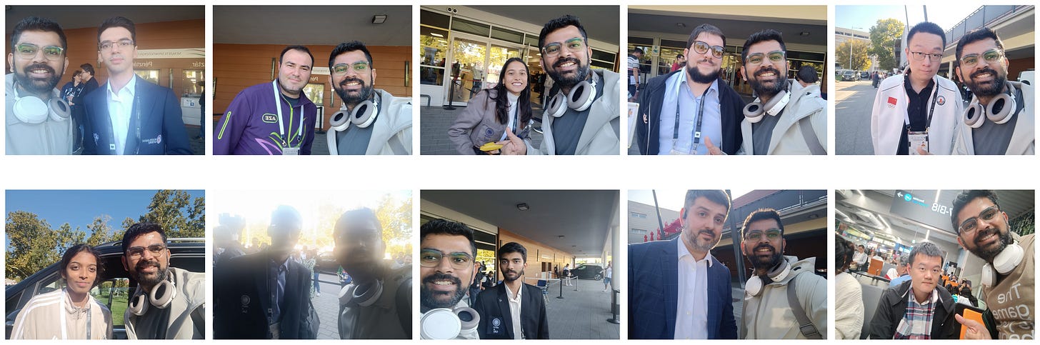As I entered the grand venue of the 2024 Chess Olympiad, my heart raced with excitement. It was a chess lover’s paradise, and I was about to meet some of the greatest players in the world. Yes, I actually did meet many of my heroes in real life. I have the photos to prove it (check them out in the collage below!). But what if, instead of just meeting them, I was one of them? That’s when my imagination took over and decided to run wild...